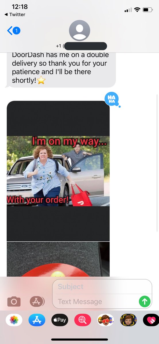 Paige On Twitter My Doordash Driver Was Absolutely Adorable Sending Memes And Shit Was A Lil Elderly Lady Too Https T Co Vlooarxizk Twitter